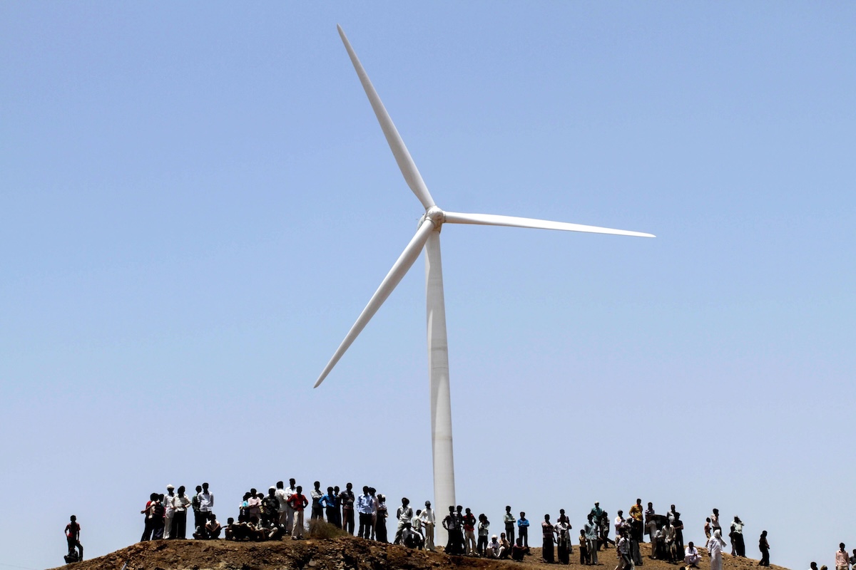 The inauguration of ReNew’s wind farm near Jasdan, Gujarat, India, in 2012. Photographer: Ajit Solanki/AP Photos