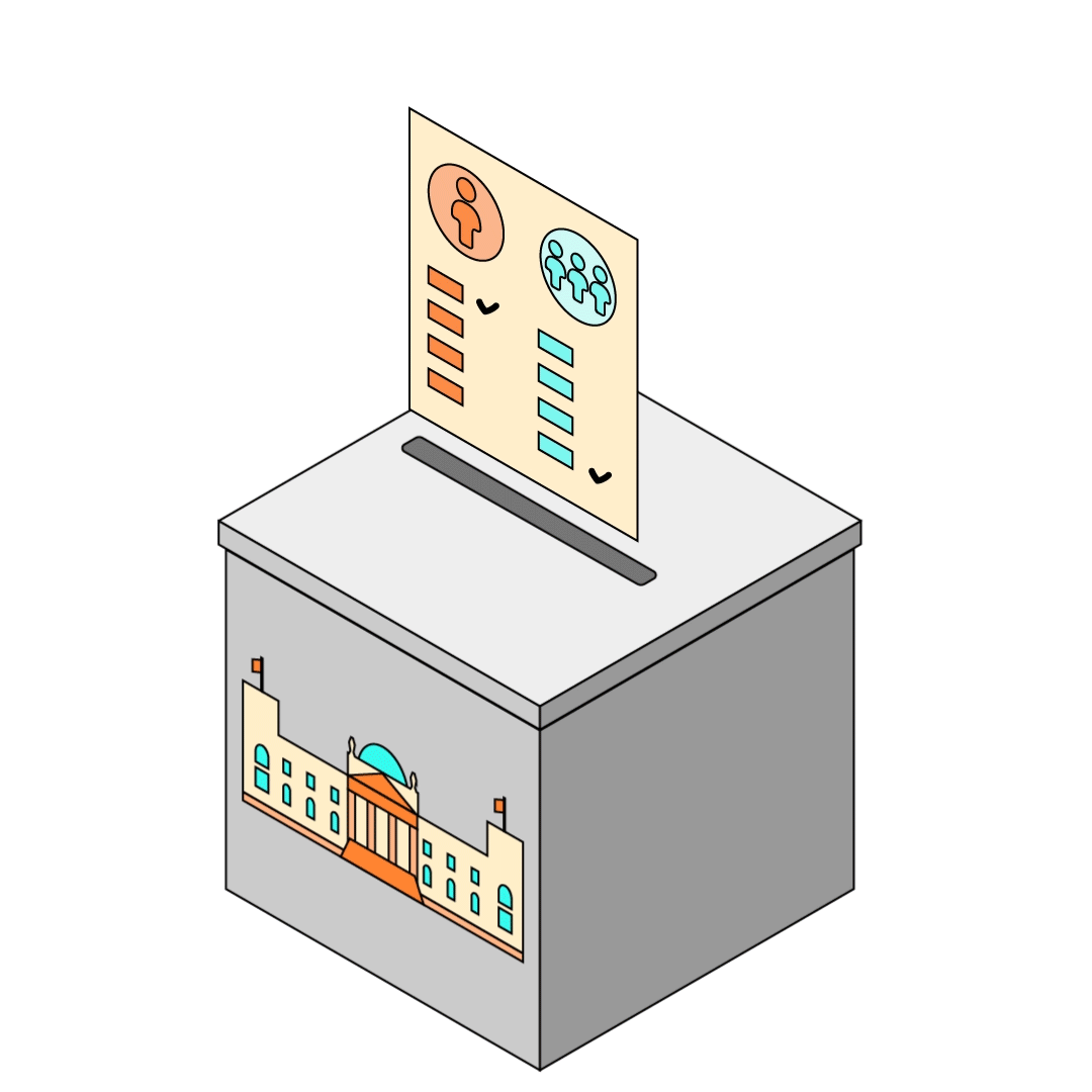 Bei der Bundestagswahl werden zwei Stimmen abgegeben: Die Erststimme für einen Wahlkreis-Kandidaten und die Zweitstimme für eine Partei. Letztere ist schlussendlich entscheidend für die Zusammensetzung des Bundestags. Die SPD um Olaf Scholz gewann die vergangene Wahl beispielsweise mit 25,7% der Zweitstimmen und schlug damit die CDU/CSU, die nur 24,2% erreichte. Aufgrund des Wahlsystems können Parteien mehr Direktmandate gewinnen, als ihnen gemäß dem Verhältnis der Zweitstimmen Sitze im Bundestag zustehen - die sogenannten “Überhangmandate”. Um die Verhältnismäßigkeit auf der Grundlage der Zweitstimme wiederherzustellen, wurden 2013 Ausgleichsmandate eingeführt.