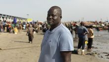Abdou Karim Sall at the fishing port in Joal, Senegal. Photographer: Stefan Kleinowitz/Bloomberg.