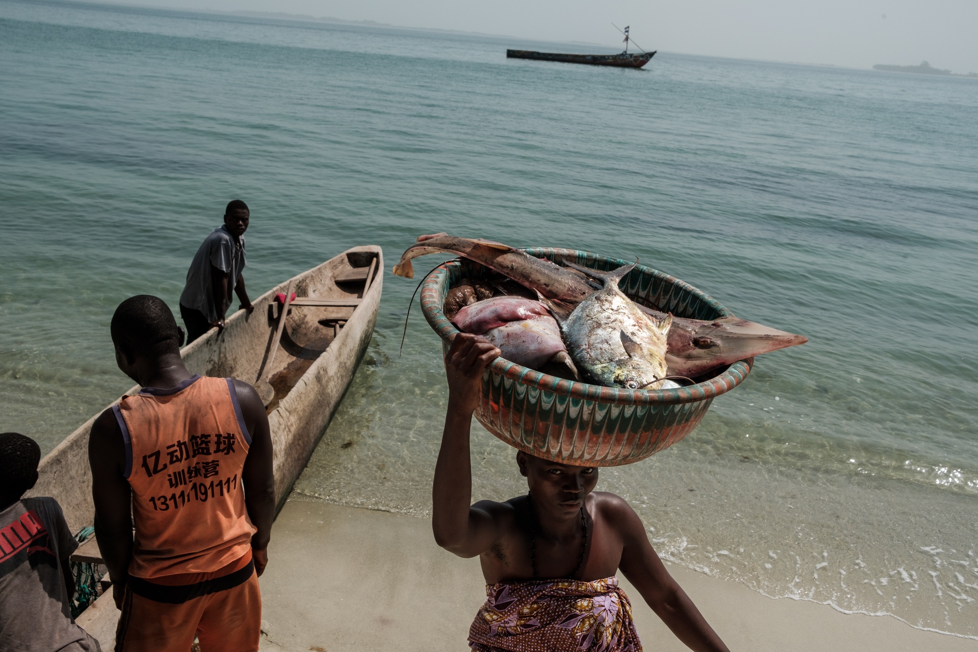 In Joal-Fadiouth, about 100 kilometers down the coast from Dakar, almost everyone depends on fishing: the fishermen, their families, factory workers, truck drivers, even the tailor. At a wharf just north of the town, young men in raincoats and flip-flops rush to unload the day’s catch of silver dorade, red mullet and white grouper from brightly painted wooden pirogues.