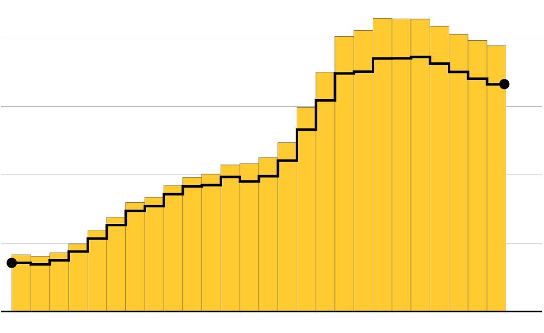 It’s less clear how many people successfully cross the border. Customs and Border Protection tries to estimate the total based on surveillance footage, evidence of movement (e.g., footprints, overturned rocks, litter) and reports from local residents. A Department of Homeland Security report estimated that CBP had an effectiveness rate of between 55 to 85 percent in fiscal year 2016—versus 35 to 70 percent a decade ago. The rate varies depending on how the total number of attempts is estimated.
