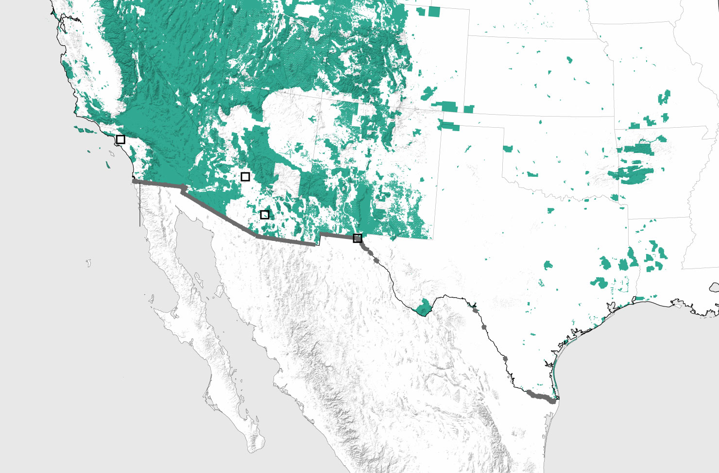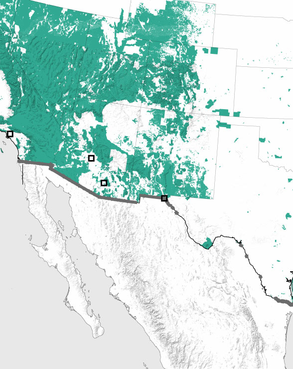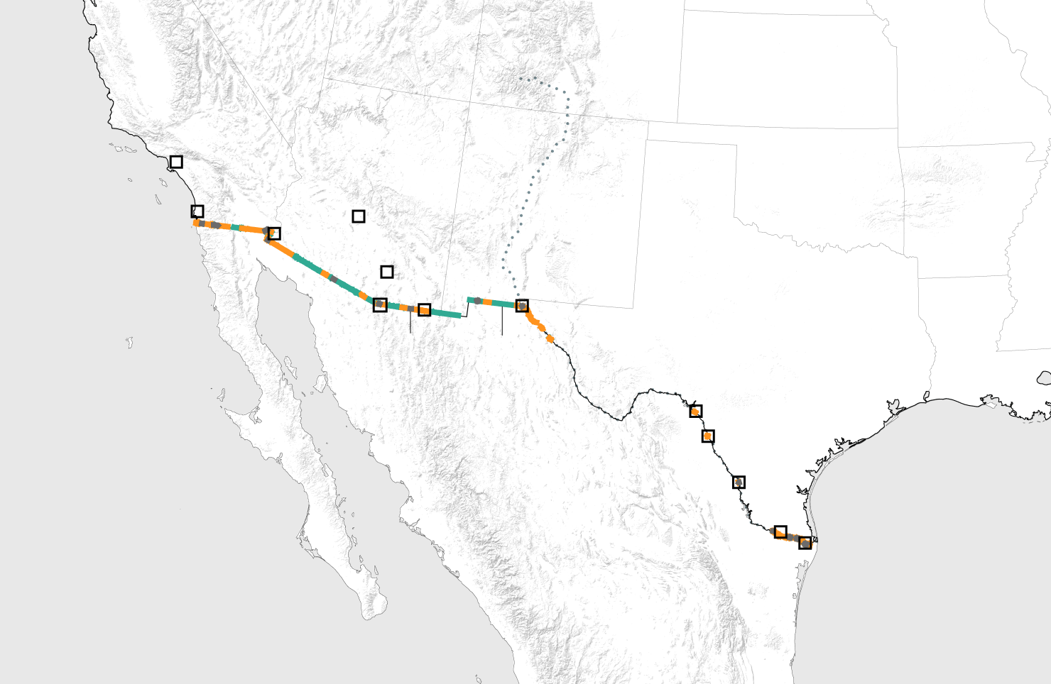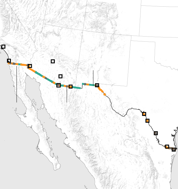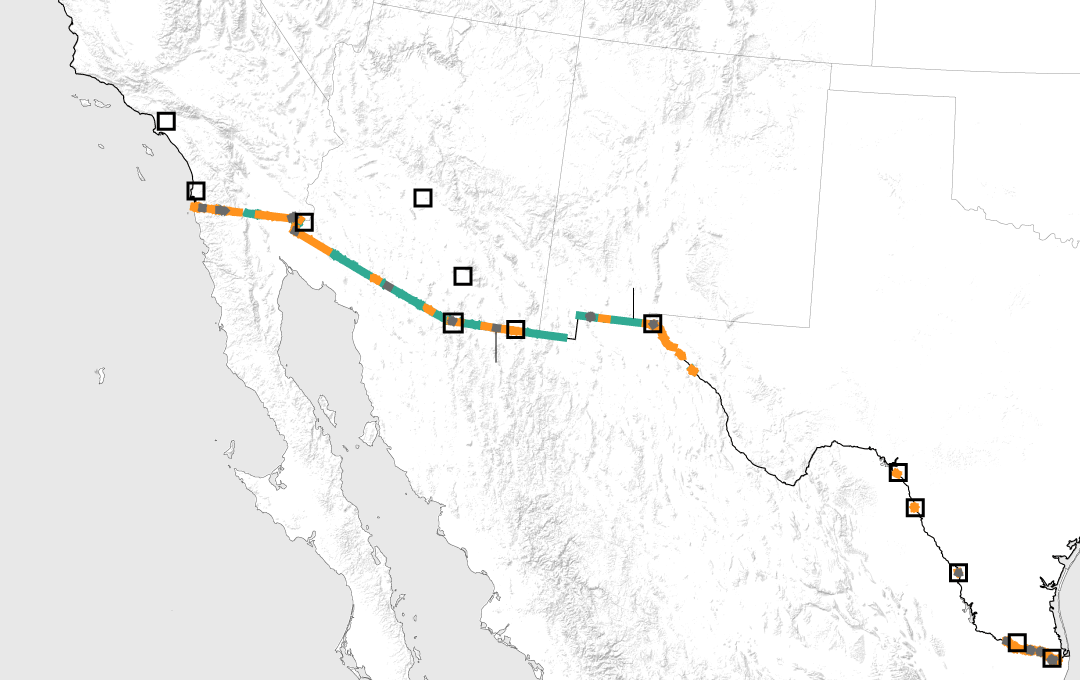 Land along the border cuts through cities, including Nogales, Arizona and El Paso, Texas, as well as rural farmland, desert, arroyos, craggy mountains and wildlife reserves. The border features an array of existing fencing, more than 30 border patrol stations and 25 legal ports of entry.