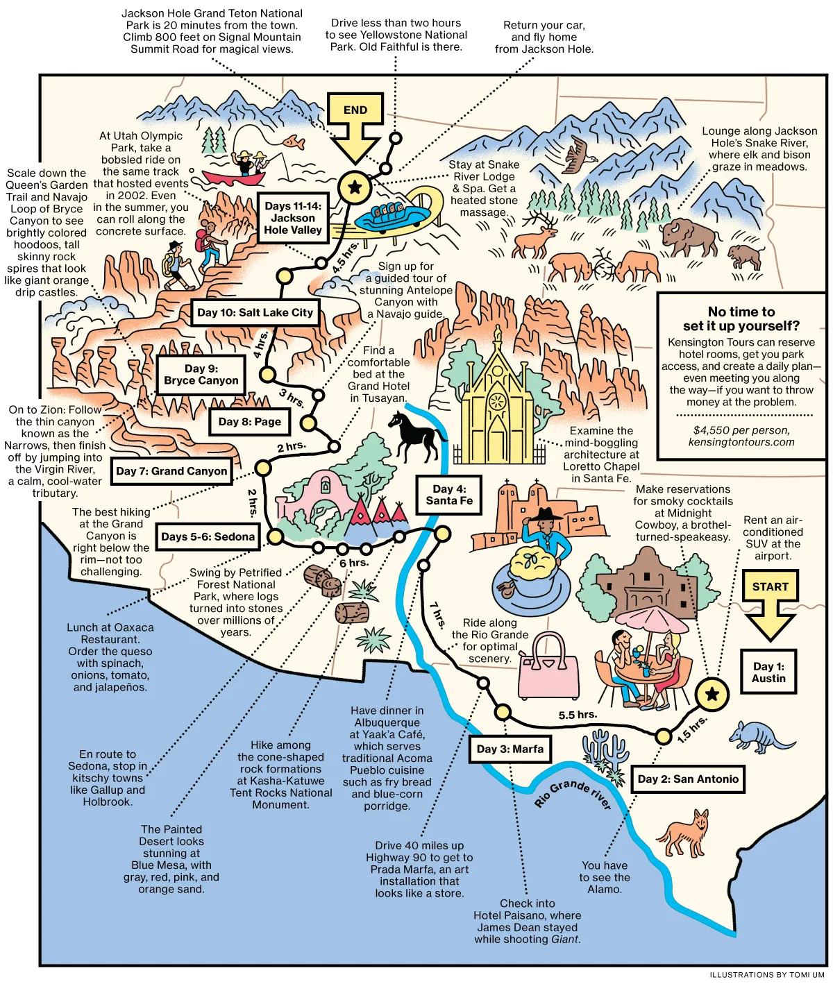 From Austin to Jackson Hole, with stops in Santa Fe, Sedona, and Salt Lake City.