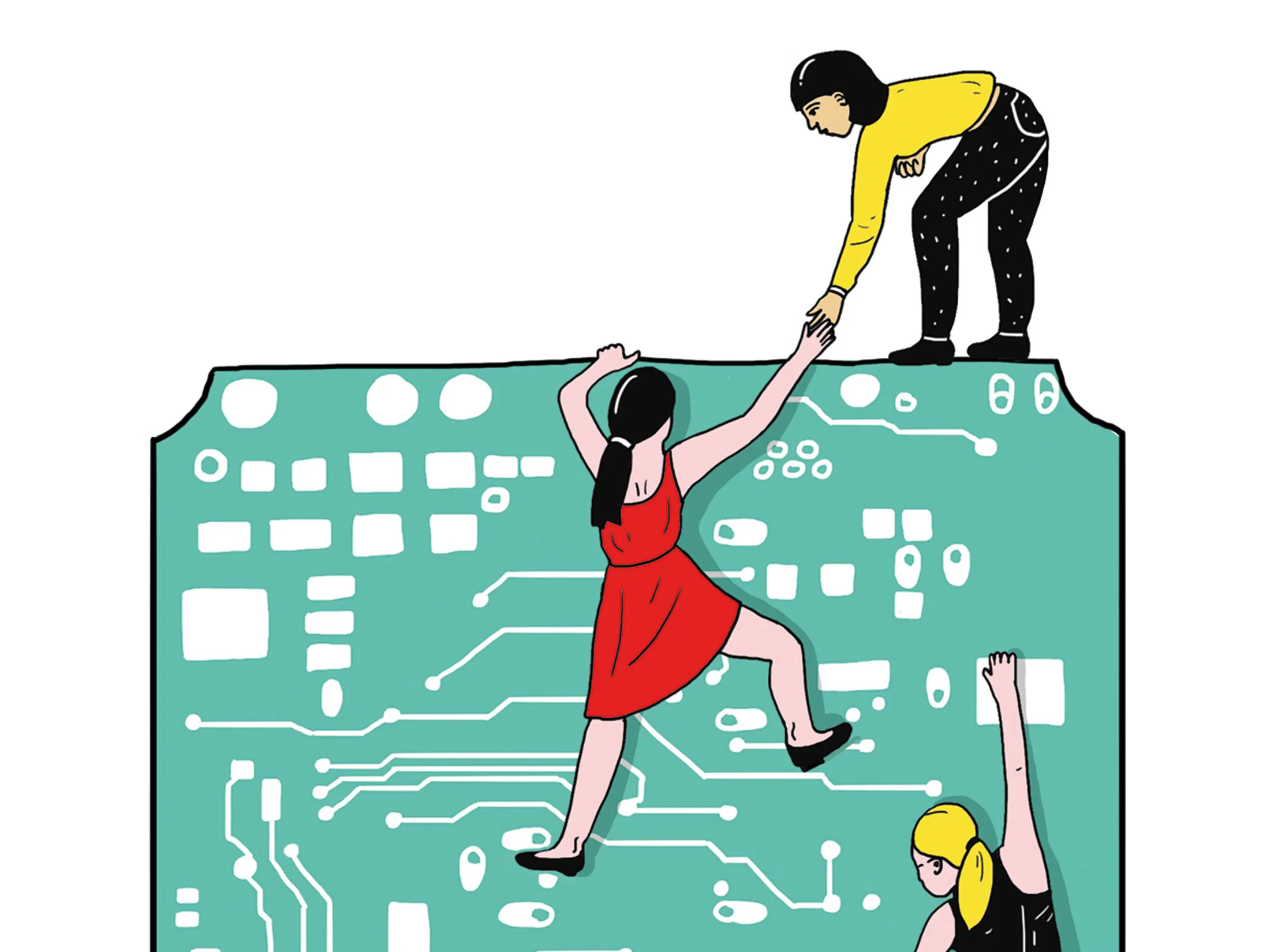 There’s a scene in Code: Debugging the Gender Gap in which two twentysomething male software designers present their satirical app to hundreds of developers at a 2013 hackathon sponsored by the website TechCrunch. “Titstare is an app where you take photos of yourself staring at tits,” announces David Boulton, one of the designers. He says this is fun because, while men enjoy staring at breasts, “women just aren’t that warm to it.” As he talks, a cartoon of a woman slapping a man flashes on the screen behind him. Some bros cheer.