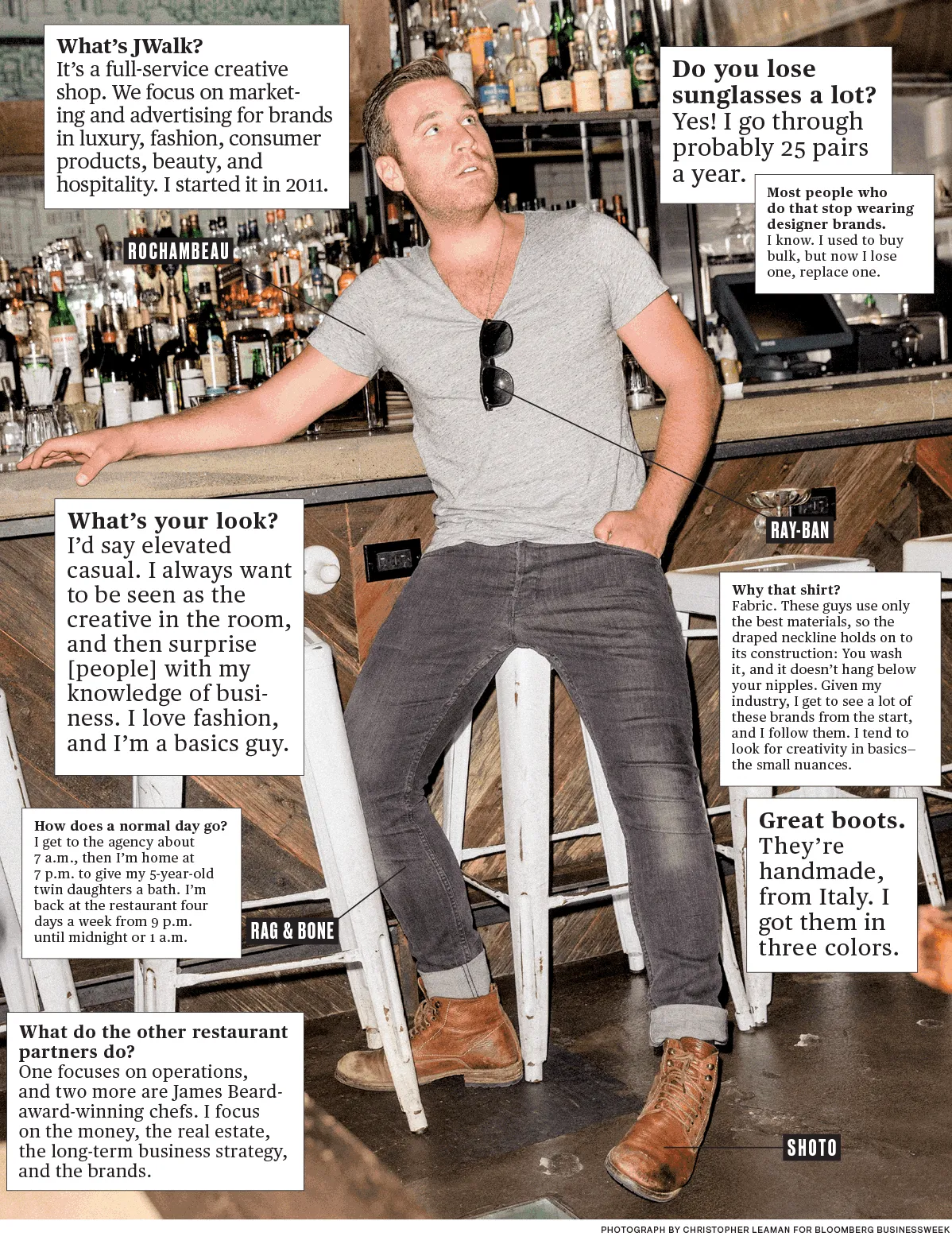 The branding executive and restaurateur goes for an elevated casual look