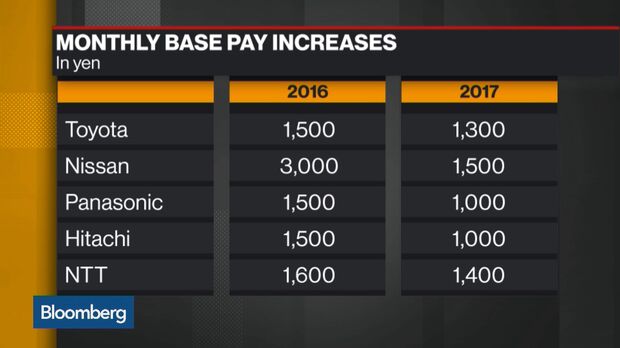 Household names from Panasonic Corp. to Toyota Motor Corp., Nissan Motor Co. and Hitachi Ltd. announced smaller annual wage increases Wednesday for next fiscal year. The slower gains reflect rising concern among exporters about overseas markets following the election of President Donald Trump, said Takeshi Minami, chief economist at Norinchukin Research Institute.