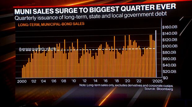 State and local governments have sold $153 billion of new debt in the second quarter, already the biggest ever with just four trading days left in the period, according to data compiled by Bloomberg. That has lifted 2025 sales to more than $271 billion, a 21% increase over last year’s volume.