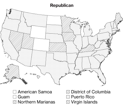 On the Republican side, three states and two territories will not award delegates based on a primary or caucus vote: Colorado, North Dakota, Wyoming, American Samoa, and Guam. Instead, all of their delegates are unbound—that is, free to ignore the popular vote and support any candidate they like.
